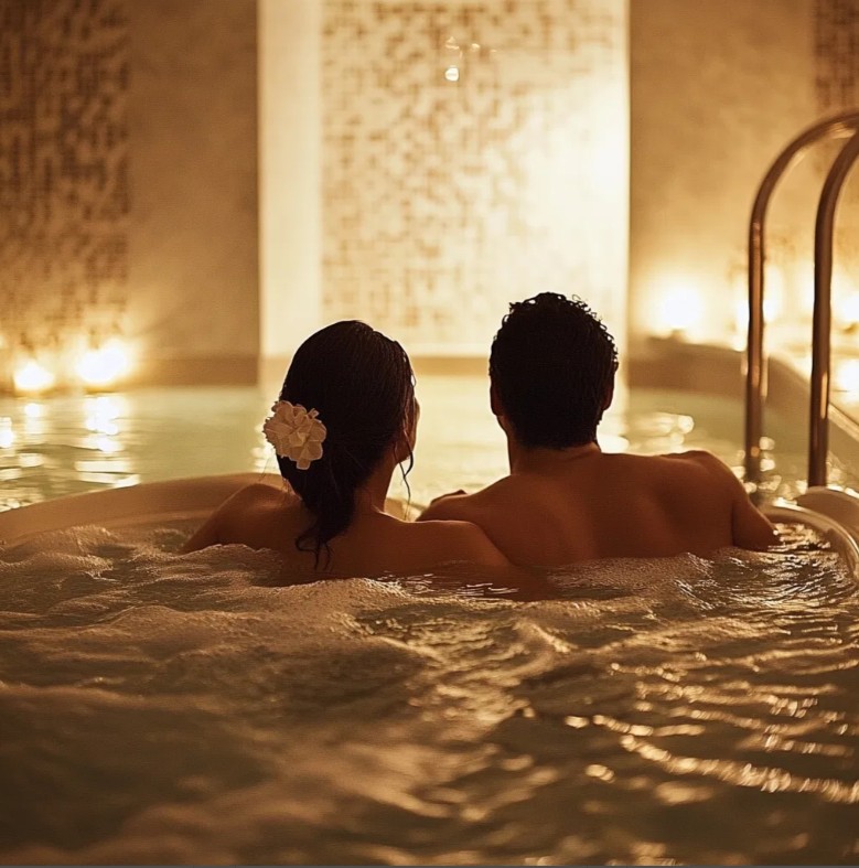 Spa romántico para 2. Regálense un momento único de desconexión y complicidad. Disfruten juntos de un relajante circuito de spa en privado con una botella de cava y una selección de bombones. Una experiencia pensada para celebrar el amor y compartir instantes inolvidables en pareja.