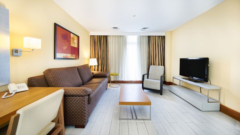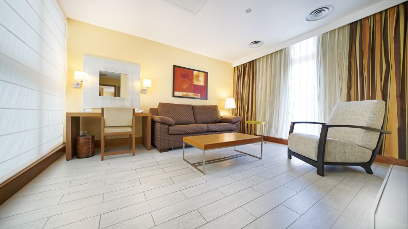 Die Zimmer sind geräumig und komfortabel und so gestaltet, dass sie Ihre Erholung und die Ihrer Lieben garantieren. Wir haben auch eine Bar, ein Solarium, eine Sauna, einen Swimmingpool und einen Fitnessraum im obersten Stockwerk. In unserem Buffetrestaurant servieren wir Frühstück, Halbpension oder Vollpension.